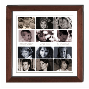 3 sujets 12 portraits cadre bois teinte acajou