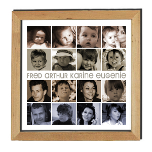 4 sujets 16 portraits cadre bois naturel